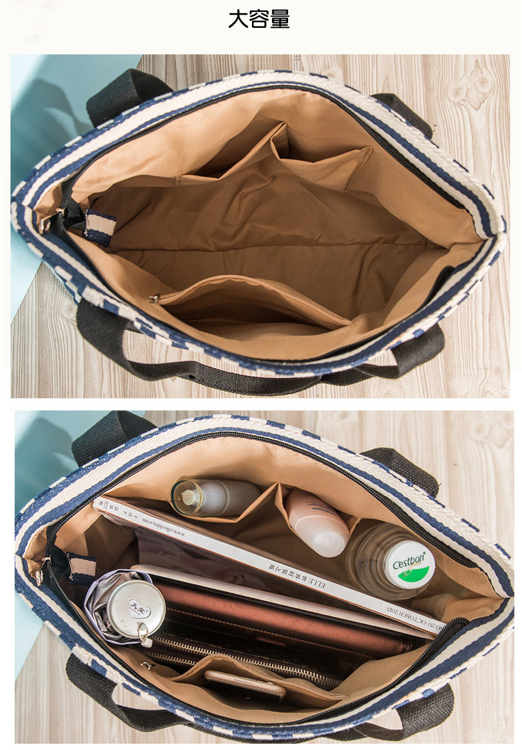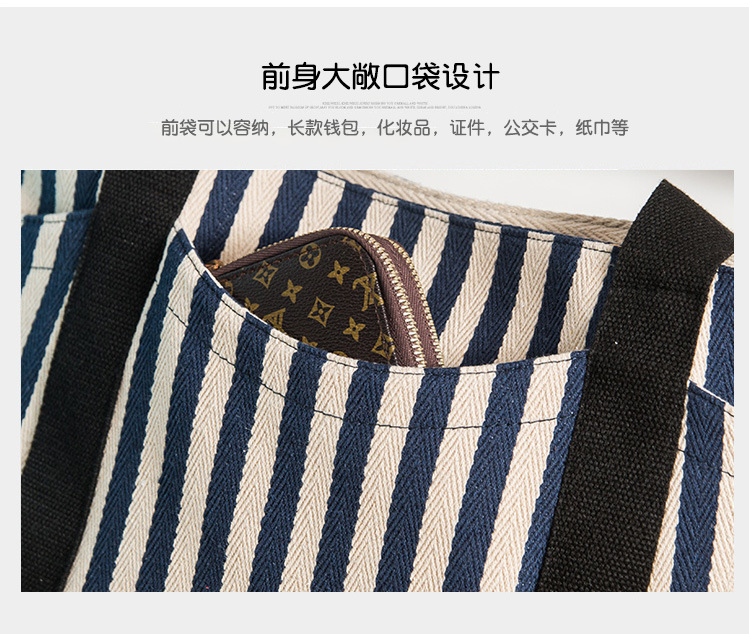 廠家定制歐美時尚女包,條紋帆布包女式手提單肩包托特媽咪帆布袋大包,簡約的設計風格,大氣的五金搭配,走線勻稱,內部實用,顏色正,質感好。