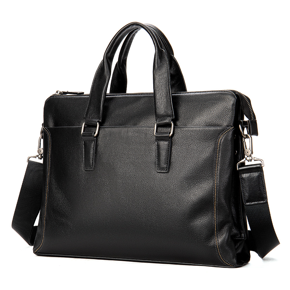 男士選購公文包,首先考慮做工的精致程度。這就要觀察其包面、內里、配件,甚至拉鏈的順滑度等方面。然后就是公文包外觀應平整、光滑、沒有鼓泡和裸露的毛邊、沒有多余的接縫。