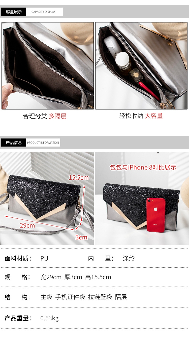廠家批量定做,PU亮片手拿包,女士時(shí)尚信封包,氣質(zhì)優(yōu)雅,百搭單肩斜挎包。